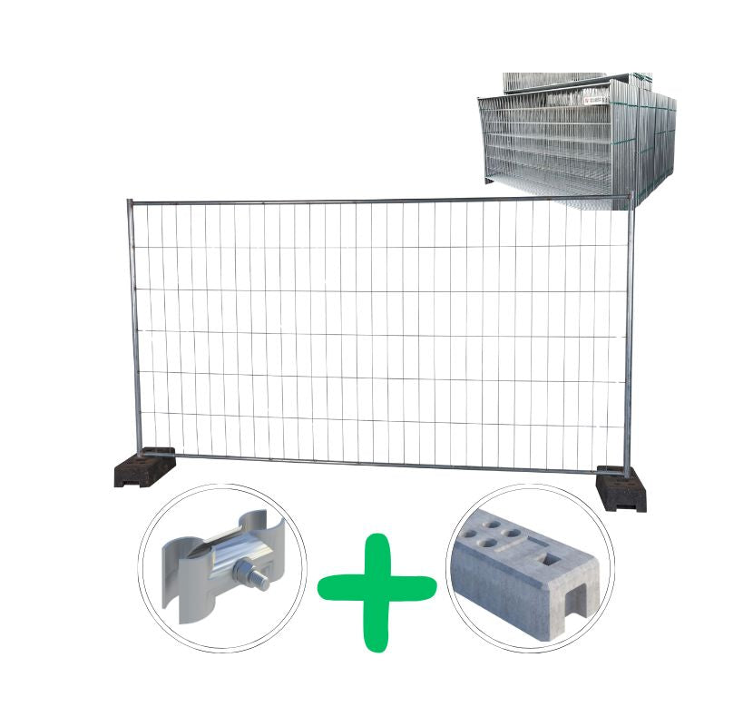 100 Stk Bauzaun Standard 350m (3,5x2,0m) - komplett inkl. Schellen und Füße