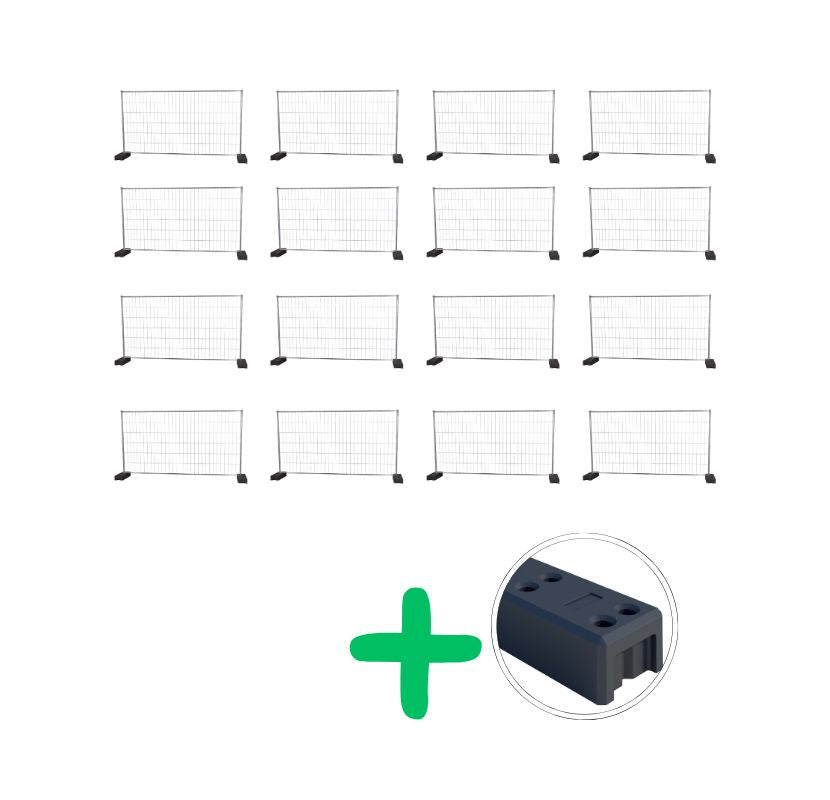 Bauzaun Set 16 Felder 3,5 x 2,0 m – Komplett mit Gummifuß & Schellen