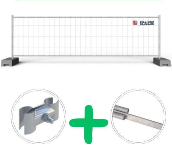 Bauzaun Set halbhoch 70 m | 345x110 cm mit Bodenhülsen & Schellen