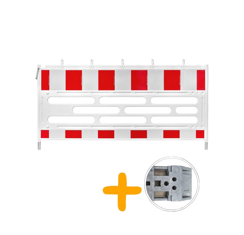 Schrankenzaun Set RA2 aus HDPE | 10 Absperrelemente + 11 K1-Fußplatten